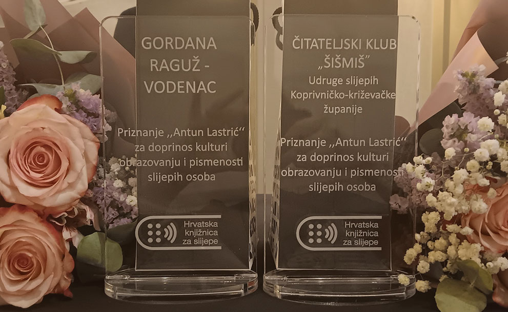 Dobitnici su tiflografičarka Gordana Raguž-Vodenac, postumno, i Čitateljski klub “Šišmiš” Udruge slijepih Koprivničko-križevačke županije.